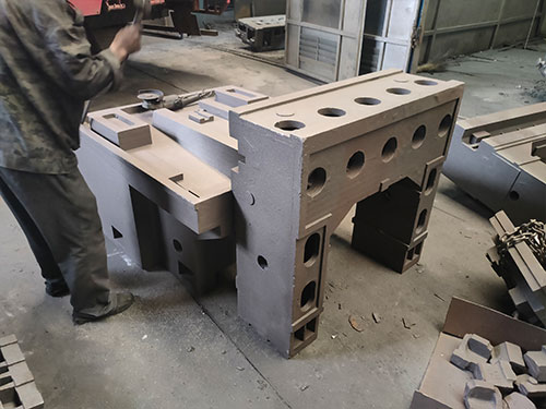 1、樹脂砂型剛度好,澆注初期砂型,這就有條件利用鑄鐵凝固過程的石墨化膨脹, 地機床鑄件、機床床身鑄件縮孔、縮松缺陷,實現灰鑄鐵、球墨鑄件的少冒口、無冒口鑄造。